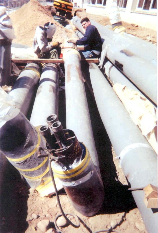Composite piping installation with hot water heat tracing